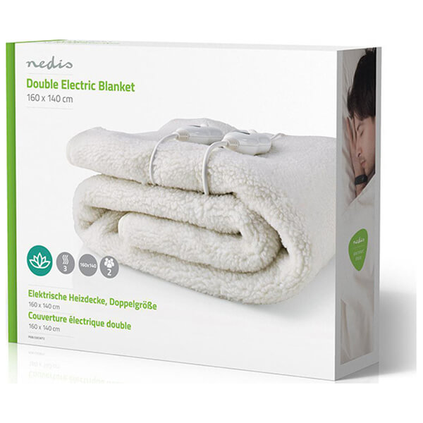 Διπλή ηλεκτρική κουβέρτα της Nedis από συνθετικό μαλλί και πολυεστέρα. Σας προσφέρει ευχάριστη ζεστασιά τις κρύες χειμωνιάτικες νύχτες.