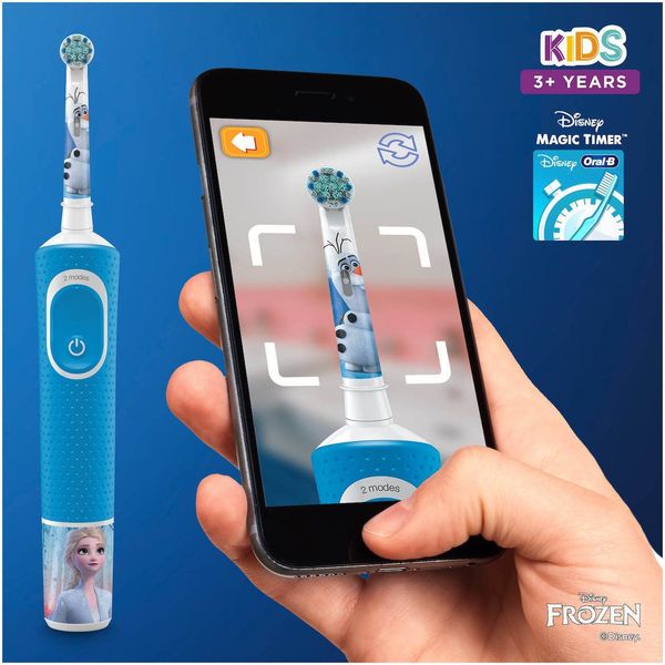 Κάντε το καθημερινό βούρτσισμα των παιδιών σας μια μαγική εμπειρία με την ηλεκτρική οδοντόβουρτσα Oral-B Vitality Pro Kids Frozen. Ειδικά σχεδιασμένη για παιδιά, με απαλή κεφαλή που καθαρίζει αποτελεσματικά χωρίς να ερεθίζει τα ευαίσθητα δόντια και ούλα. Ο διασκεδαστικός σχεδιασμός Frozen με αγαπημένους χαρακτήρες της Disney ενθαρρύνει τα παιδιά να βουρτσίζουν τα δόντια τους πιο συχνά και σωστά. Το πακέτο περιλαμβάνει και τα ανταλλακτικά κεφαλάκια Frozen, για να εξασφαλίζεται συνεχής καθαριότητα και υγιεινή με στυλ!