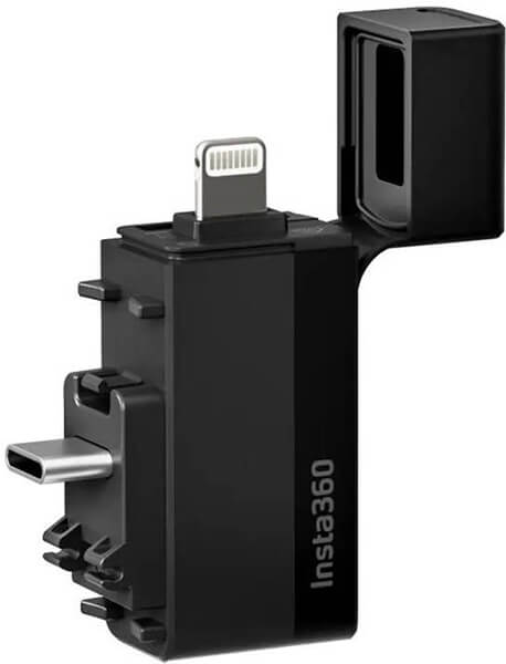-Για προεπισκόπηση και επεξεργασία των πλάνων ενώ βρίσκεστε εν κινήσει, απλώς τοποθετήστε την υποδοχή Lightning ή USB Type-C σε μια συμβατή κινητή συσκευή και ανοίξτε την εφαρμογή Insta360.
