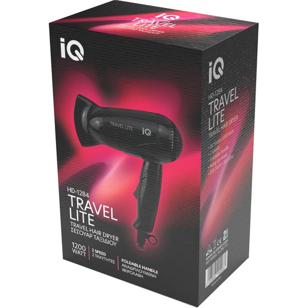 Φορητό και ισχυρό, το IQ σεσουάρ ταξιδιού 1200W είναι ιδανικό. Διαθέτει DC μοτέρ, 2 επιλογές θερμοκρασίας/ταχύτητας και σύστημα προστασίας υπερθέρμανσης. Ελαφρύ και πρακτικό, χωρά εύκολα σε κάθε βαλίτσα - τέλειο για ταξίδια και καθημερινή χρήση.
