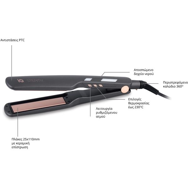 - Επιλογές θερμοκρασίας έως 230°C με LED ενδείξεις και "+""-" κουμπιά