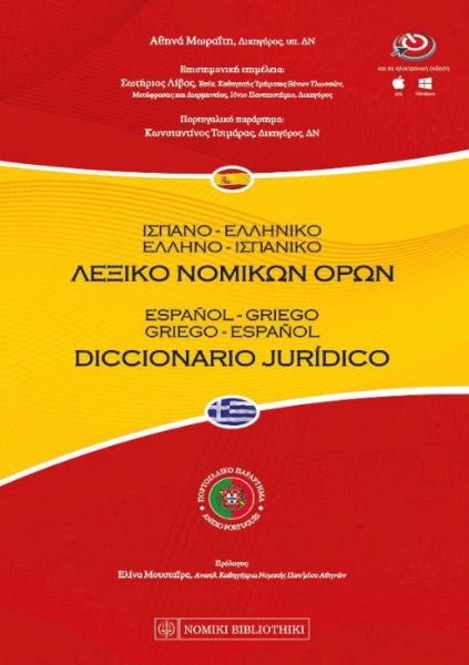 Το Ισπανοελληνικό-Ελληνοϊσπανικό Λεξικό Νομικών Όρων είναι το πλέον σύγχρονο και ενημερωμένο λεξικό νομικής ορολογίας του είδους που έχει κυκλοφορήσει ποτέ, περιλαμβάνοντας χιλιάδες κύρια λήμματα, φράσεις και παραδείγματα από τη νομική πρακτική. Πρόκειται για επίτομη, πολυτελή έκδοση, με ευανάγνωστη εκτύπωση και σκληρό εξώφυλλο το οποίο συνοδεύεται από μαλακό προστατευτικό κάλυμμα. Το ισπανοελληνικό-ελληνοϊσπανικό λεξικό νομικών όρων εντάσσεται στη νέα σειρά δίγλωσσων λεξικών νομικών όρων των εκδόσεων ΝΟΜΙΚΗ ΒΙΒΛΙΟΘΗΚΗ, τα οποία αφορούν στις γλώσσες Αγγλικά, Γαλλικά, Γερμανικά, Ισπανικά και Ιταλικά.