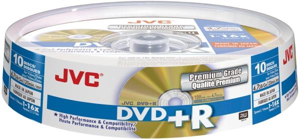 JVC DVD+R 16X 4,7GB GOLD MATT CAKEBOX 10PCS JAPAN MADE BY TAIYO YUDEN (ANA.JVC0221)