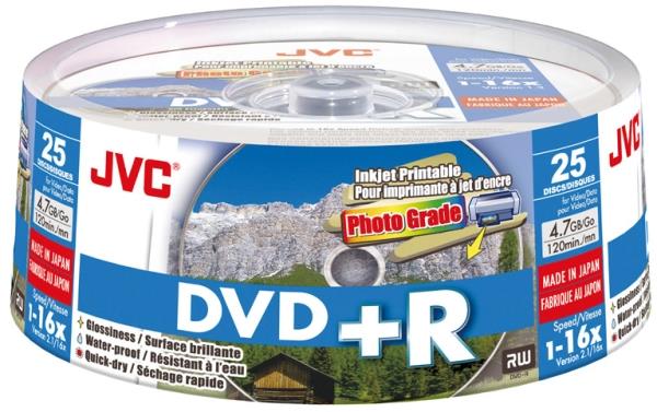 JVC DVD+R 16X 4,7GB WATERPROOF PHOTO PRINTABLE WHITE INKJET CAKEBOX 25PCS JAPAN MADE BY TAIYO YUDEN (ANA.JVC0205)