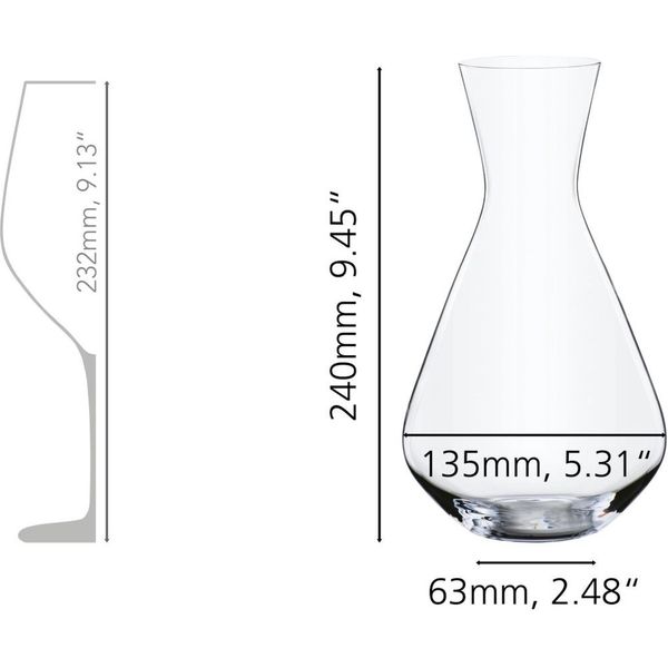 • Χωρητικότητα: 1400 ml • Ύψος: 240 mm • Διάμετρος καράφας: 135 mm • Διάμετρος βάσης: 63 mm • Βάρος: 290 gr • Πλένεται στο πλυντήριο πιάτων