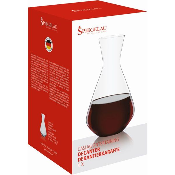Αυτή η καράφα από τη σειρά Casual της SPIEGELAU ενισχύει τον αερισμό των κορυφαίων σας κρασιών και αναβαθμίζει την παρουσίασή τους. Δεν αποτελεί απλά μια εντυπωσιακή προσθήκη στο τραπέζι σας αλλά μετατρέπει το οινικό σας τελετουργικό σε ένα ταξίδι των αισθήσεων. Καθώς σερβίρετε, παρακολουθήστε το κρασί σας να χορεύει, να αερίζεται και να απελευθερώνει το μπουκέτο αρωμάτων του. Απολαύστε τις διακριτικές γεύσεις και τα ντελικάτα αρώματα, καθώς κάθε σας ποτήρι μετατρέπεται σε μια γιορτή της τέχνης του αμπελώνα. Η καράφα με τα τετραγωνισμένα χαρακτηριστικά και την μεγάλη βάση εξασφαλίζει σταθερό κράτημα και ασφαλή στήριξη. Με χωρητικότητα 1.4 λίτρων, ιδανική για μία φιάλη κρασί των 750ml.