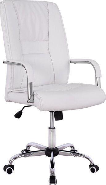 Καρέκλα γραφείου διευθυντική με μπράτσα και ανάκλιση από υψηλής ποιότητας PU σε λευκό χρώμα και μοναδικό design.