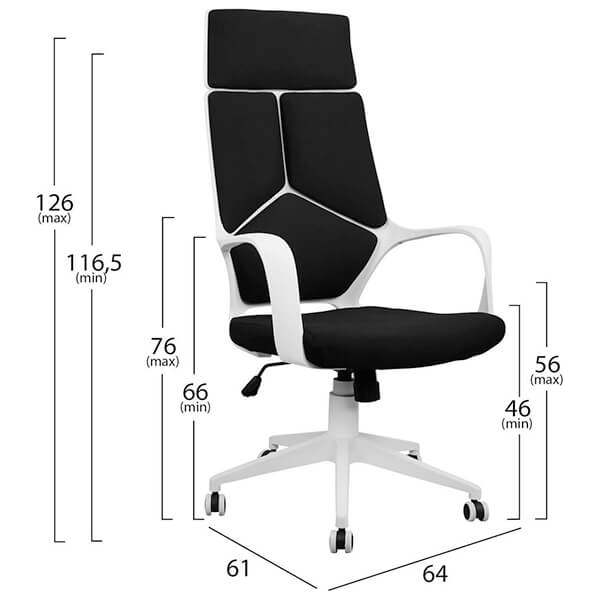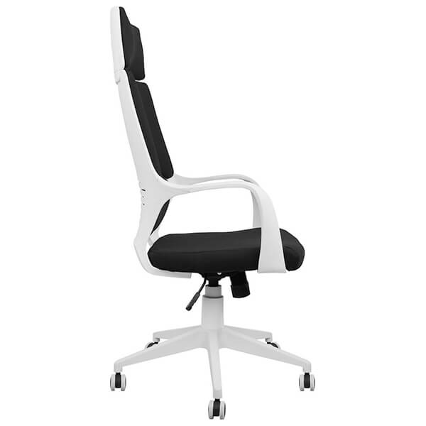 Καρέκλα γραφείου σε έναν άψογο συνδυασμό από λευκό πολυπροπυλένιο και μαύρο ύφασμα για να αναδείξει κάθε γωνία γραφείου.