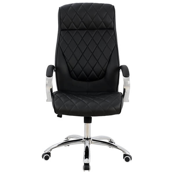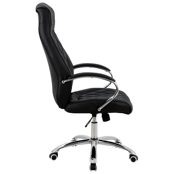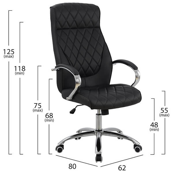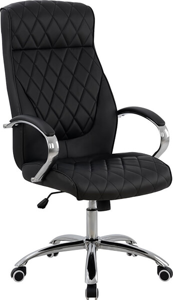Καρέκλα γραφείου διευθυντική, με μπράτσα και ανάκλιση, από υψηλής ποιότητας PU σε μαύρο χρώμα και μοναδικό design.