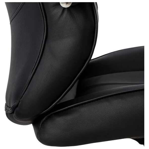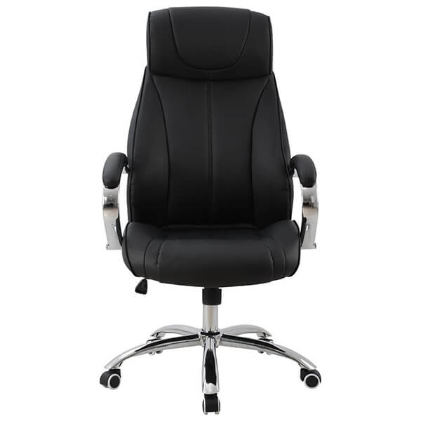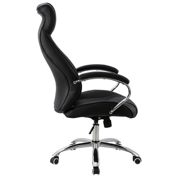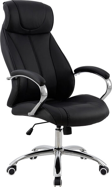 Καρέκλα γραφείου διευθυντική με μπράτσα και ανάκλιση από υψηλής ποιότητας PU σε μαύρο χρώμα και μοναδικό design.