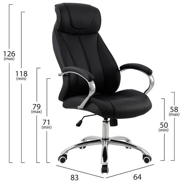 ΚΑΡΕΚΛΑ ΓΡΑΦΕΙΟΥ XAVIERE HM1096.01 ΜΑΥΡΗ PER.819601 PER.819601 HM HM OFFICE CHAIRS Κατηγορία: OFFICE CHAIRS •HM στην κατηγορία OFFICE CHAIRS Καρέκλα γραφείου διευθυντική με μπράτσα και ανάκλιση από υψηλής ποιότητας PU σε μαύρο χρώμα και μοναδικό design.-Μπράτσα και βάση μεταλλικά ενισχυμένα βαρέως τύπου επιχρωμιωμένα. -Ροδάκια ενισχυμένα. -Κάθισμα και πλάτη με ανατομικά μαξιλαράκια στήριξης. -Ιδανική για αυτούς που κάθονται αρκετές ώρες μπροστά στον υπολογιστή. Χαρακτηριστικά: • Διαστάσεις: 64 x 83 x 118-126 εκ.• Ύψος καθίσματος: 50 εκ./58 εκ.• Ύψος μπράτσων: 71 εκ./79 εκ.• Διαστάσεις καθίσματος: 53 x 55 εκ.• Χρώμα: Μαύρο.• Εγγύηση: 1 χρόνος. DOA 7 ημερών