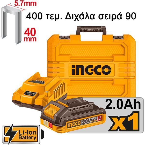 ΚΑΡΦΩΤΙΚΟ ΔΙΧΑΛΩΝ ΜΠΑΤΑΡΙΑΣ 20V LI-ION +ΒΑΛΙΤΣΑ INGCO CCSNLI6008E