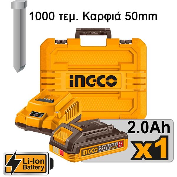 ΚΑΡΦΩΤΙΚΟ ΜΠΑΤΑΡΙΑΣ 20V LI-ION + ΒΑΛΙΤΣΑ INGCO CBNLI5008E (TLS.391834)