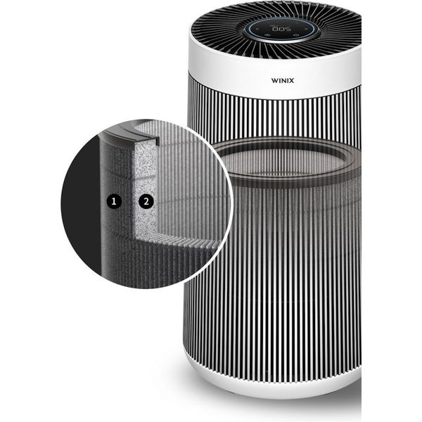 • Καλυπτόμενη επιφάνεια: 45120 τ.μ. (5 εναλλαγές αέρα ανά ώρα σε 45 τ.μ.) • Ταχύτητες ανεμιστήρα: 5 (Sleep / Low / Med / High / Turbo) • Παροχή αέρα (m³/h): 150 / 170 / 290 / 330 / 500 • Στάθμη θορύβου (dB): 23, 2 / 30, 7 / 38, 7 / 44, 2 / 56, 2 • Κατανάλωση ενέργειας (W): 2, 5 / 6, 2 / 9, 2 / 13, 5 / 45 • Τροφοδοσία ισχύος: 220-240V / 50-60Hz • Ρεύμα λειτουργίας: 0, 7 A • Διαστάσεις (ΜxΥxΠ): 28, 6 x 51, 8 x 28, 6 cm • Βάρος: 4, 7 kg • Wi-Fi: Ναι, μέσω Winix Smart App • Χρόνος αντικατάστασης φίλτρων: 1 έτος • Αισθητήριο: Σωματιδίων (Particles) • Πιστοποιήσεις: CCE, ROHS/REACH, Energy Star, CARB, WEEE, Δημόκριτος • Χώρα κατασκευής: Νότια Κορέα • Εγγύηση: 5 χρόνια με την προϋπόθεση ότι τα φίλτρα αλλάζονται μια φορά ανά έτος, αν τα φίλτρα δεν αλλάζονται ανά έτος η εγγύηση είναι 2 χρόνια.