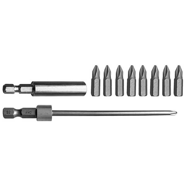 • Περιεχόμενα Συσκευασίας: Φορτιστής 2.4A, 2 μπαταρίες 2.0Ah Li-Ion, 1 αυτοτροφοδοτούμενο εξάρτημα, 10 μύτες κατσαβιδιού, μεταλλικό κλιπ ζώνης, πλαστική βαλίτσα