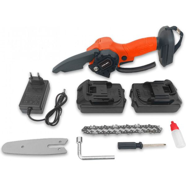 • Δύναμη τσέπης: Με την μπαταρία ιόντων λιθίου 21V, αυτό το μικρό αλυσοπρίονο κόβει σαν επαγγελματικό, χωρίς να σε κουράζει καθόλου.