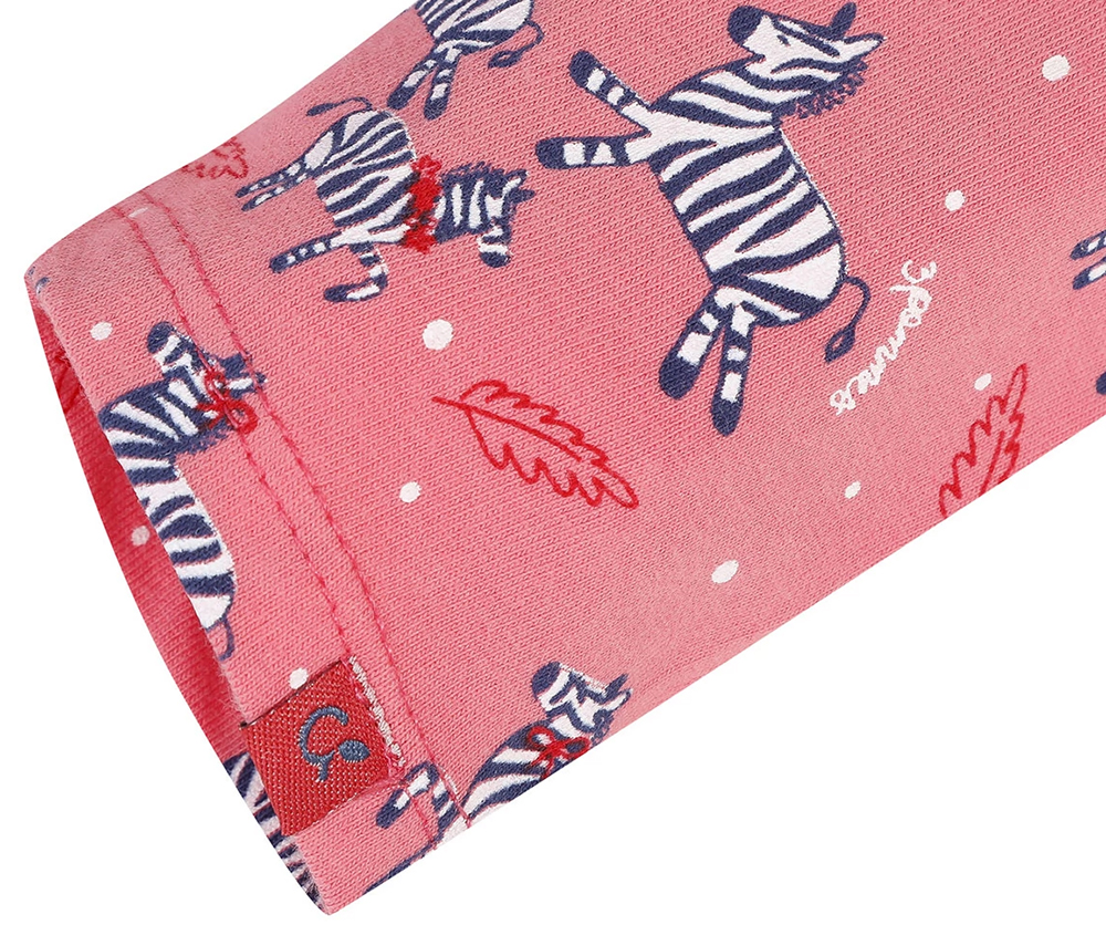 Είναι ελαστικό σε κοραλί χρώμα με ιδιαίτερο μοτίβο από ζέβρες και φύλλα σε όλη του την επιφάνεια.