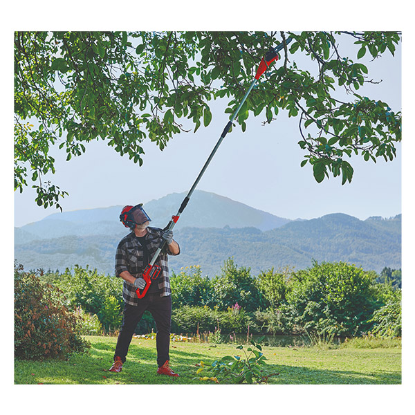 Το κονταροπρίονο Einhell GC-LC 18/20 Li T-Solo είναι ιδανικό για το κανονικό κλάδεμα δέντρων και υψηλότερων θάμνων. Είναι μέλος της οικογένειας Power X-Change. Με μήκος ράγας κοπής 200 mm (σιδηροτροχιά και αλυσίδα υψηλής ποιότητας OREGON) και ταχύτητα κοπής 5,5 μέτρα ανά δευτερόλεπτο, καθιστά τα κλαδιά κοπής χωρίς πρόβλημα. Η κεφαλή του κινητήρα έχει γωνία κλίσης 30 °. Σε συνδυασμό με τον πόλο προέκτασης για την επίτευξη υψηλότερων κλάδων, το κλαδευτήρι τοποθετημένο σε στύλο μπορεί να χρησιμοποιηθεί με ευελιξία. Η πρόσθετη λαστιχένια περιοχή συγκράτησης παρέχει εργονομικό χειρισμό και σταθερό, ασφαλές κράτημα. Επιπλέον, το κλαδευτήρι διαθέτει επίσης λουρί. Το στιβαρό γρανάζι έχει σχεδιαστεί για να διαρκεί και είναι κατασκευασμένη από μέταλλο και το κλαδευτήρι με στύλο διαθέτει επίσης ένα μπουλόνι αλυσίδας για μεγαλύτερη ασφάλεια. Η λίπανση της αλυσίδας γίνεται αυτόματα. Προσοχή μπαταρία και ο φορτιστής δεν περιλαμβάνονται. Χαρακτηριστικά Κεφαλή κινητήρα με γωνία κλίσης 30 ° για εύκολες περικοπές.Κοντάρι επέκτασης για την επίτευξη υψηλότερων κλάδων.Μεταλλικό γρανάζι για μεγάλη διάρκεια ζωής.Πρόσθετος ελαστικοποιημένος χώρος συγκράτησης για εργονομικό χειρισμό.Μεταλλικά στοιχεία για μεγάλη διάρκεια ζωής.OREGON λεπίδα και αλυσίδα.Ζώνη μεταφοράς.Δεξαμενή λαδιού για αυτόματη λίπανση αλυσίδας. Τεχνικά Χαρακτηριστικά Τάση: 18 V.Τύπος μπαταρίας: Li-Ion.Μήκος λάμας: 200 mm.Ταχύτητα κοπής αλυσίδας: 5.5 m / s.Μέγιστο μήκος κοπής: 195 mm.Μήκος τηλεσκοπικής ράβδου: 228 cm 288 cm.Χωρητικότητα του δοχείου λαδιού: 70 ml. Εγγύηση: 2 χρόνια.