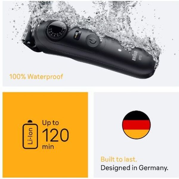 Κατασκευασμένο για να διαρκεί 100% αδιάβροχο τρίμερ για άνδρες με μπαταρία ιόντων λιθίου μεγάλης διάρκειας και έως 120 λεπτά ασύρματης λειτουργίας.