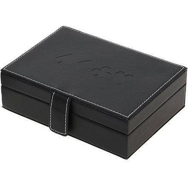 Κουτί δερματίνης μαύρο με δύο τράπουλες Modiano σε μπλε και κόκκινο χρώμα, του γνωστού Ιταλικού οίκου Μodiano. Η συσκευασία περιέχει δύο τράπουλες μέσα σε επενδεδυμένη θήκη δερματίνης εξαιρετικής ποιότητας που κλείνει με μαγνητικό κουμπί.