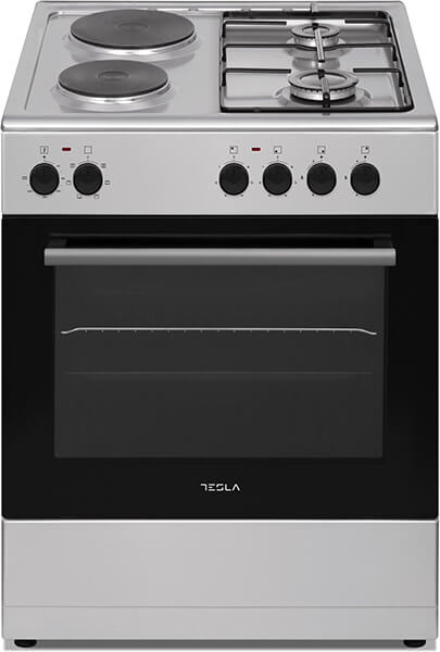 Κουζίνα Tesla. -Μαύρη εμαγιέ επιφάνεια φούρνου, κατασκευασμένη με αόρατες διασταυρώσεις, δημιουργεί μια λεία επιφάνεια που καθαρίζεται εύκολα. -Η πόρτα του φούρνου είναι πλήρως γυάλινη επιφάνεια. -Κάθε ανεξάρτητη κουζίνα Tesla διαθέτει αφαιρούμενη πόρτα, επιτρέποντας εύκολη πρόσβαση και καθαρισμό. -Πρώτα η ασφάλεια: αυτή η λειτουργία της συσκευής καταγράφει την απουσία αερίου και διακόπτει αυτόματα την παροχή. -Ο φούρνος turbo grill, επιτρέποντας ομοιόμορφη θερμοκρασία, θα κάνει τα πιάτα σας υπέροχα. -Χάρη σε ένα ειδικό κουμπί, ο καυστήρας αερίου μπορεί να ανάψει γρήγορα και με ασφάλεια. • Χωρητικότητα φούρνου: 55 l. • Ενεργειακή κλάση: Α. • Φούρνος: με γκριλ. • Τύπος εστίας: Μικτή εστία με 2 εστίες + 2 εστίες αερίου. • Λειτουργίες φούρνου: Off / Πάνω θερμάστρα / Πάνω και κάτω θερμάστρα / Πάνω και κάτω θερμάστρα με ανεμιστήρα / Κάτω θερμάστρα, Γκριλ / Γκριλ με ανεμιστήρα. • Εστίες: Μπροστινή αριστερή ζώνη - 1 KW - 145 mm, Μπροστινή δεξιά ζώνη - 90 KW - 75 mm, Επάνω δεξιά ζώνη - 70 KW - 55 mm, ’νω αριστερή ζώνη - 1, 5 KW - 180 mm. • Εξοπλισμός: 1 ταψί + 1 σχάρα. • Τροφοδοσία: 220/50Hz. • Διαστάσεις: 60 x 60 x 83 cm. • Χρώμα: Inox. • Εγγύηση: 5 χρόνια. DOA 7 ημερών