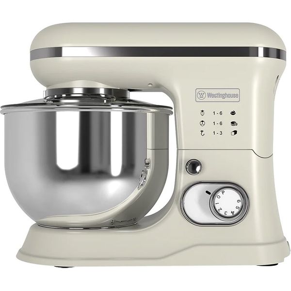 Westinghouse Retro Stand Mixer με χωρητικότητα 5L, ισχύ 1200 W και εντυπωσιακό ρετρό σχεδιασμό για απόλυτη ευελιξία στην κουζίνα. Διαθέτει κάδο 5 λίτρων από ανοξείδωτο ατσάλι, 6 ταχύτητες με λειτουργία Pulse και τρία εξαρτήματα (άγκιστρο ζύμης, αναδευτήρας και αυγοδάρτης) που καλύπτουν κάθε ανάγκη: από ανάμειξη και ζύμωμα μέχρι χτύπημα κρέμας και αφράτων μειγμάτων. Διαθέτει διαφανές καπάκι για προστασία από πιτσιλίσματα, αντιολισθητική βάση για σταθερότητα, καθώς και προστασία από υπερθέρμανση για μέγιστη ασφάλεια σε κάθε χρήση. Η λειτουργία Eject διευκολύνει την αλλαγή των εξαρτημάτων, κάνοντας την προετοιμασία συνταγών πιο πρακτική και απολαυστική.