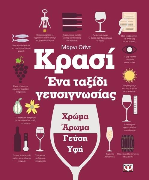 Το ΚΡΑΣΙ ΕΝΑ ΤΑΞΙΔΙ ΓΕΥΣΙΓΝΩΣΙΑΣ αποτελεί μία λεπτομερειακή και άκρως ενδιαφέρουσα εξερεύνηση στον κόσμο του κρασιού. Μάθετε πώς να γεύεστε το κρασί, πώς να επιλέγετε κρασιά που θα απολαύσετε, πώς να τα αποθηκεύετε και να τα σερβίρετε ώστε να αναδύονται τα αρώματα και να αναδεικνύεται η γεύση τους. Γνωρίστε την πλήρη γκάμα των λευκών, κόκκινων και ροζέ κρασιών, τις διάφορες ποικιλίες των σταφυλιών και τις περιοχές που παράγουν κρασιά.