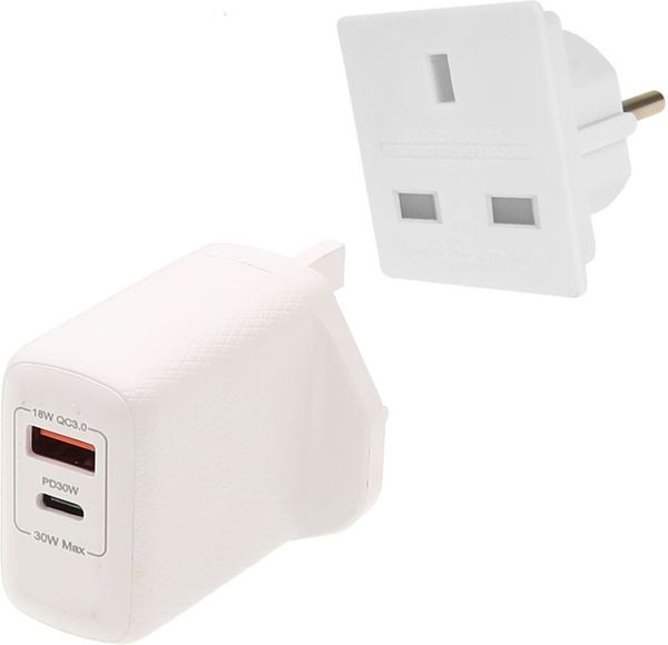 LAMTECH 2-IN-1 Ταξιδιωτικός Φορτιστής USB QC3.0 & Type-C 30W με Αντάπτορα EU/UK