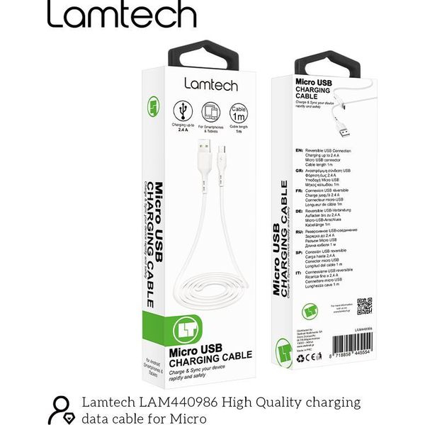 lamtech datacable micro usb 1m white lam440986 photo
