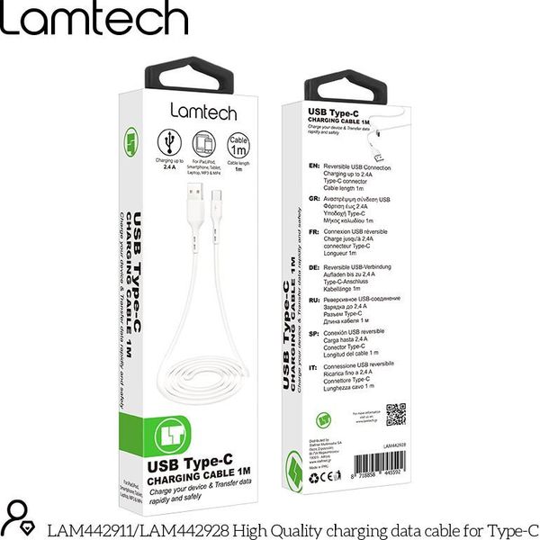 lamtech datacable type c 1m white lam442928 photo