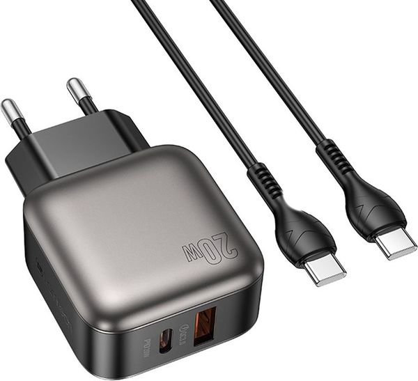 LAMTECH DUAL PORT QC3.0 CHARGER SET PD20W WITH TYPE-C TO TYPE-C CABLE 60W 1M GREY LAM980725 (TEL.234933)