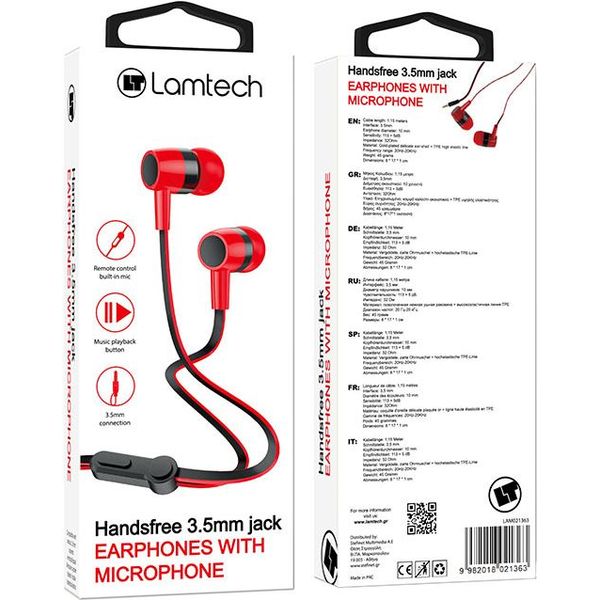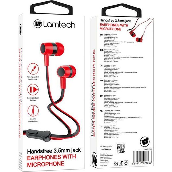 lamtech handsfree with mic 35mm jack red lam021363 photo