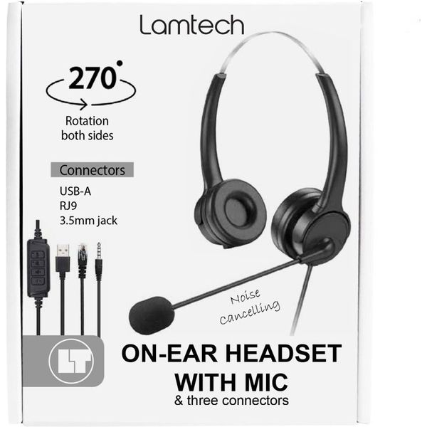 lamtech on ear headset with anc mic and 3 connectors lam114352 photo