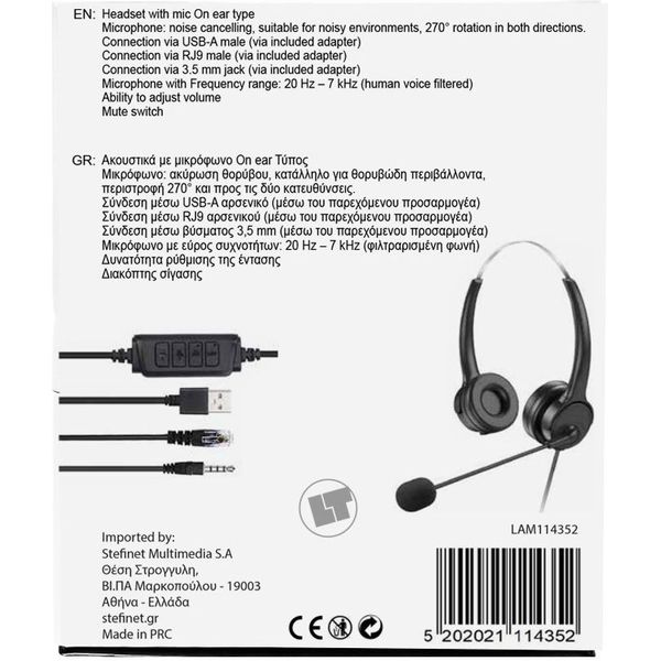 Αρχική > Ήχος - Εικόνα > Ακουστικά > LAMTECH ON-EAR HEADSET WITH ANC MIC AND 3 CONNECTORS LAM114352