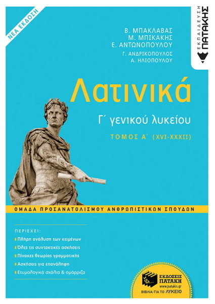 ISBN: 978-960-16-9324-8 Συγγραφέας: ΣΥΛΛΟΓΙΚΟ ΕΡΓΟ Εκδοτικός οίκος: ΠΑΤΑΚΗ Σειρά: ΑΝΘΡΩΠΙΣΤΙΚΩΝ ΣΠΟΥΔΩΝ Σελίδες: 528 Διαστάσεις: 17Χ24 Ημερομηνία Έκδοσης: Ιούλιος 2021 Το παρόν δίτομο βοήθημα περιέχει την ανάλυση των μαθημάτων που διδάσκονται στη Γ΄ Λυκείου. Ακολουθεί το νέο Πρόγραμμα σπουδών για το μάθημα των Λατινικών. Στηρίζεται στις παρατηρήσεις του σχολικού βιβλίου, του Βιβλίου του καθηγητή, του βιβλίου «Αξιολόγηση» του Κ.Ε.Ε. και των Ψηφιακών Βοηθημάτων του Υπουργείου Παιδείας. Ο Α΄ τόμος περιλαμβάνει την ανάλυση των Μαθημάτων 16-32 και ο Β΄ τόμος των Μαθημάτων 33-50. Ο Α΄ τόμος περιλαμβάνει: -ερωτήσεις εισαγωγής -κείμενο και μετάφραση σε αντιστοίχιση -διαγραμματική παρουσίαση του εισαγωγικού σημειώματος των κειμένων -αναλυτική γραμματική και συντακτική ανάλυση των κειμένων -τα συντακτικά σχόλια που αποτελούν μέρος της εξεταστέας ύλης -ετυμολογικά σχόλια και ομόρριζα της νεοελληνικής γλώσσας -όλους τους τύπους των συντακτικών ασκήσεων που μπορεί να ζητηθούν στις εξετάσεις -ασκήσεις γραμματικής και συντακτικού όλων των τύπων -όλη τη θεωρία της γραμματικής σε πίνακες (ενώ στον 2ο τόμο θα περιλαμβάνεται όλη η θεωρία του συντακτικού σε πίνακες) -απαντήσεις στις ασκήσεις του σχολικού βιβλίου -λατινικές φράσεις που χρησιμοποιούνται στη νεοελληνική γλώσσα -επαναληπτικές ασκήσεις ανά Μάθημα.