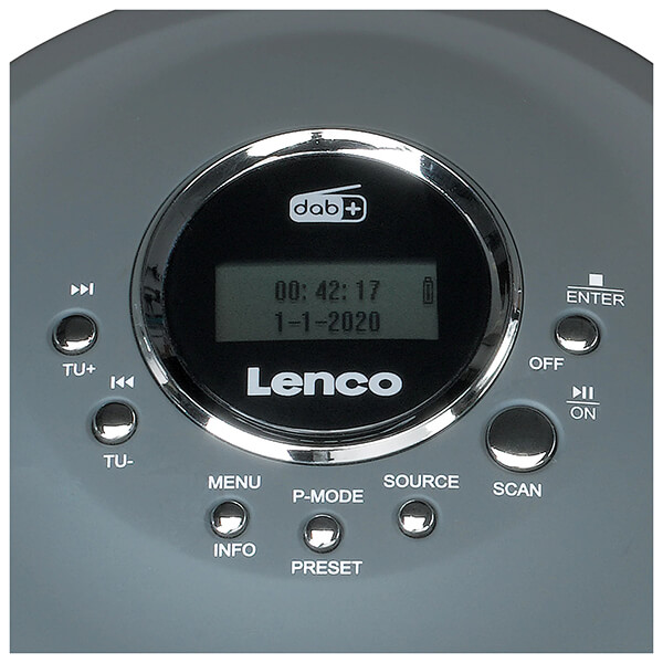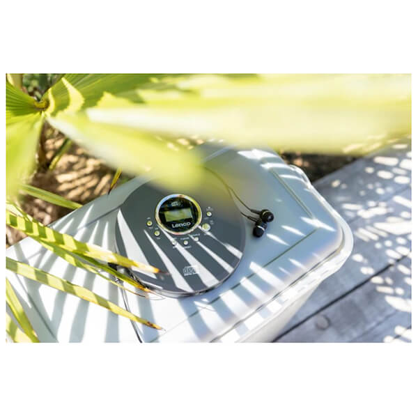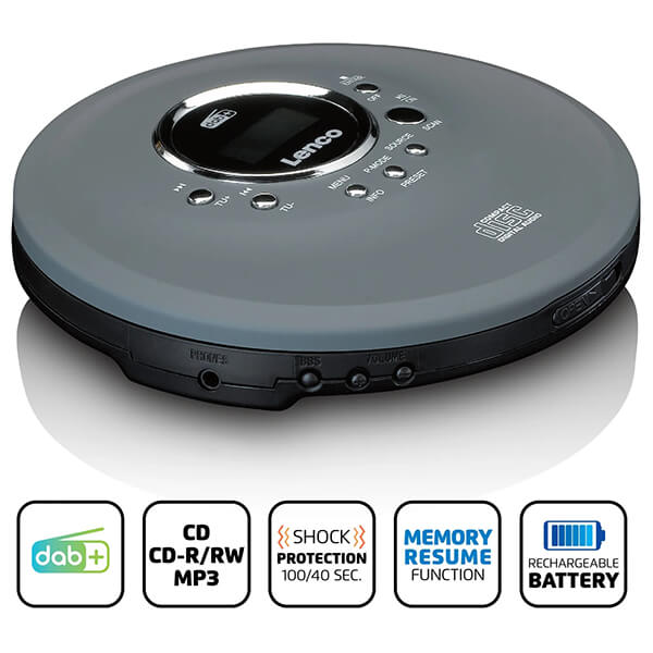 Φορητό CD player της Lenco σε συμπαγές μέγεθος για εύκολη μεταφορά. Μπορείτε να αναπαράγετε μουσική μέσα από CD ή αρχεία MP3, αλλά λειτουργεί επίσης ως ραδιόφωνο καθώς έχει δέκτες DAB και FM. Η συσκευή έχει εξωτερικό περίβλημα από καουτσούκ για να προστατεύεται από κραδασμούς. Συνοδεύεται από ακουστικά και καλώδιο micro-USB. -Η οθόνη dot matrix είναι ευανάγνωστη και ευκρινής. -Η επαναφορτιζόμενη μπαταρία διαρκεί οκτώ ώρες για αναπαραγωγή MP3/CD και έως και δώδεκα ώρες για ακρόαση ραδιοφώνου. -Απομνημονεύει το τελευταίο κομμάτι που παίχτηκε ενώ έχετε τη δυνατότητα αναπαραγωγής των τραγουδιών επανειλημμένα ή τυχαία.