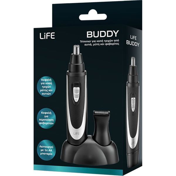 Το trimmer LIFE Buddy είναι ο ιδανικός σύμμαχος για την αφαίρεση ανεπιθύμητων τριχών από τη μύτη, τα αυτιά και τις φαβορίτες. Με εργονομικό σχεδιασμό και αποσπώμενες κεφαλές, προσφέρει εύκολο και αποτελεσματικό καθαρισμό, ενώ η αδιάβροχη κατασκευή του επιτρέπει ασφαλή χρήση και μετά τον καθαρισμό.