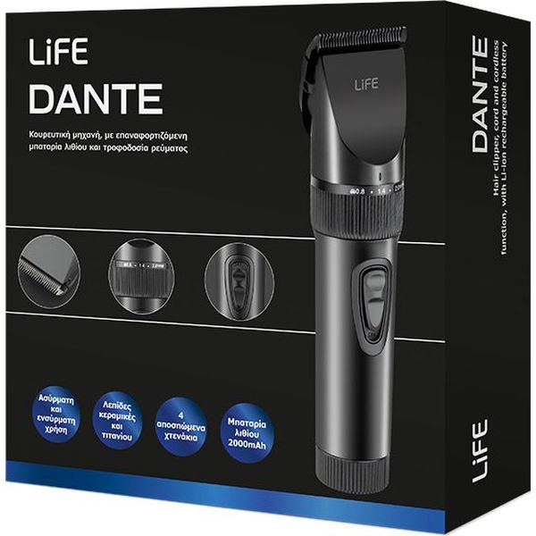 Αρχική > Ηλεκτρικές συσκευές > Κουρευτικές μηχανές > LIFE DANTE ΚΟΥΡΕΥΤΙΚΗ ΜΗΧΑΝΗ ΕΠΑΝΑΦΟΡΤΙΖΟΜΕΝΗ