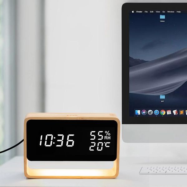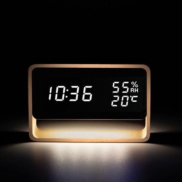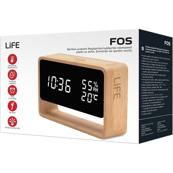 Bamboo ψηφιακό θερμόμετρο / υγρόμετρο εσωτερικού χώρου με ρολόι, ξυπνητήρι και φωτάκι νυκτός. -Διαθέτει μεγάλα ευανάγνωστα LED ψηφία σε λευκό χρώμα, για να ενημερώνεστε για την ώρα, την ημερομηνία, αλλά και για την τρέχουσα θερμοκρασία / υγρασία του χώρου σας. -Ιδανικό για χρήση και ως ρολόι κομοδίνου, καθώς μπορείτε να ορίσετε έως και 3 διαφορετικές ώρες αφύπνισης. -Διαθέτει κρυφό LED φωτισμό νυκτός ο οποίος ενεργοποιείται με πλήκτρο αφής στο επάνω μέρος της συσκευής και προσφέρει έναν ζεστό, απαλό και διακριτικό φωτισμό, ιδανικό για το βράδυ. -Παράλληλα, διαθέτει έξυπνες και χρηστικές λειτουργίες τις οποίες μπορείτε να επιλέξετε, όπως αυτόματη αλλαγή φωτεινότητας χάρη στη λειτουργία sleep display mode και λειτουργία save mode κατά την οποία η οθόνη απενεργοποιείται για εξοικονόμηση ενέργειας και ενεργοποιείται για μερικά δευτερόλεπτα όταν ακουστεί ήχος. Μπορείτε επίσης να επιλέξετε χειροκίνητα μεταξύ των τριών διαφορετικών επιπέδων φωτεινότητας (χαμηλό, μεσαίο, υψηλό) που αρμόζει στις δικές σας προτιμήσεις. -Η συσκευή λειτουργεί συνδέοντας το παρεχόμενο καλώδιο σε οποιονδήποτε universal φορτιστή USB, και διαθέτει υποδοχή για 4 μπαταρίες ΑΑΑ για διατήρηση των ρυθμίσεών σας σε περίπτωση διακοπής ρεύματος. Εύρος μετρήσιμης θερμοκρασίας: -10°C - +50°C.Εύρος μετρήσιμης υγρασίας: 20% - 90%.Προβολή ώρας: με δυνατότητα επιλογής μορφής 12/24h.Διαστάσεις (ΜxΠxΥ): 16 x 4.5 x 10.5 cm.Περιλαμβάνει: καλώδιο τροφοδοσίας USB.Τροφοδοσία: DC 5V με τροφοδοτικό USB κι εφεδρική παροχή DC 6V με 4x μπαταρίες ΑΑΑ (δεν συμπεριλαμβάνονται).Εγγύηση: 2 χρόνια. DOA 7 ημερών