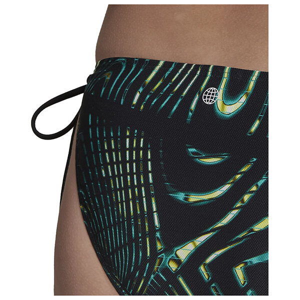 Από τα ρεύματα του ωκεανού ως τις φλέφες ενός φύλλου, όλα τα κομμάτια της φύσης είναι περίπλοκα συνδεδεμένα μεταξύ τους. Αυτό το bikini set από την adidas διακοσμείται από ζωηρά γραφικά με κυματιστές γραμμές που εκφράζουν τη σχέση μεταξύ θάλασσας και γης. Το τοπάκι διαθέτει λεπτά ραντάκια που δένουν στο πίσω μέρος και αφαιρούμενες ενισχύσεις για βέλτιστη κάλυψη. Το bikini διαθέτει πλαϊνά κορδόνια στον ίδιο σχέδιο με το top.