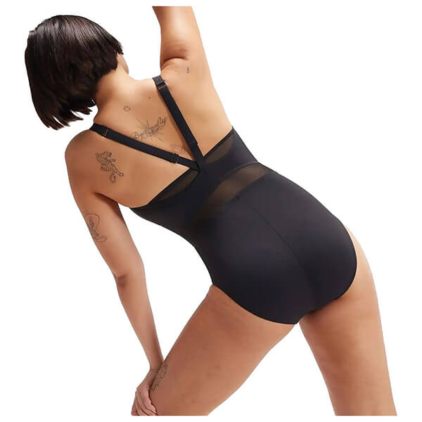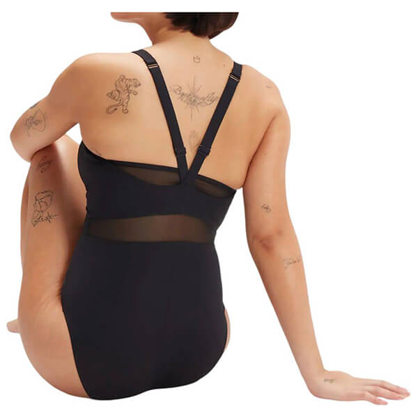 Απογειώστε το στιλ σας με το εντυπωσιακό νέο LuniaGlow σε κομψή μαύρη απόχρωση. Η κολακευτική διχτυωτή ρίγα στη μέση ενισχύει τη μέση, ενώ η πλάτη σε σχήμα V ευνοεί την ελευθερία κινήσεων. Τα ρυθμιζόμενα ραντάκια εξασφαλίζουν άψογη εφαρμογή στην προπόνησή σας, ενώ το ελαστικό shaping ύφασμα και οι υποστηρικτικές ραφές προσφέρουν προστασία μεσαίας έντασης στο στήθος. Το νέο, απαλό ύφασμα ECO SHAPE COMPREX παντρεύει τις κορυφαίες τεχνολογίες shapewear και swimwear, δηλαδή ενδύματα που ακολουθούν το σχήμα του σώματος στις κολυμβητικές σας δραστηριότητες. Ιδανικό για τακτική προπόνηση, περιλαμβάνει τις ελαστικές ίνες LYCRA XTRA LIFE, που είναι ιδιαιτέρως ανθεκτικές στο χλώριο και διαρκούν 2 φορές περισσότερο από τα συμβατικά κολυμβητικά υφάσματα. Το ύφασμα ECO SHAPE COMPREX προέρχεται εν μέρει από ανακυκλωμένα υλικά. Το νήμα nylon κατασκευάζεται από απόβλητα παραγωγής, όπως απορρίμματα υφαντουργίας.