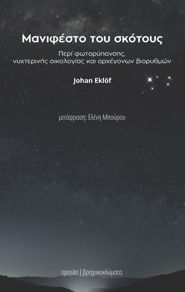 ΜΑΝΙΦΕΣΤΟ ΤΟΥ ΣΚΟΤΟΥΣ BKS.0574030 BKS.0574030 EKLOF JOHAN EKLOF JOHAN ΟΙΚΟΛΟΓΙΑ-ΦΥΣΗ Κατηγορία: ΟΙΚΟΛΟΓΙΑ-ΦΥΣΗ •EKLOF JOHAN στην κατηγορία ΟΙΚΟΛΟΓΙΑ-ΦΥΣΗ ISBN: 978-618-5833-03-9 Συγγραφέας: EKLOF JOHAN Εκδοτικός οίκος: OPOSITO Μετάφραση: ΜΠΟΥΡΟΥ ΕΛΕΝΗ Σελίδες: 240 Διαστάσεις: 13Χ20 Ημερομηνία Έκδοσης: Ιούνιος 2025 ΠΕΡΙ ΦΩΤΟΡΥΠΑΝΣΗΣ, ΝΥΧΤΕΡΙΝΗΣ ΟΙΚΟΛΟΓΙΑΣ ΚΑΙ ΑΡΧΕΓΟΝΩΝ ΒΙΟΡΥΘΜΩΝ Τα οικοσυστήματα του πλανήτη έχουν εξελιχθεί για να λειτουργούν εντός μιας φυσικής εναλλαγής φωτός και σκότους. Με την άσκοπη χρήση του φωτός και τη σταδιακή φωτορύπανση μια σειρά από πουλιά, έντομα, φυτά καθώς και πλάσματα της θάλασσας βρίσκονται πλέον σε κίνδυνο. Το ίδιο ισχύει φυσικά και για τους ανθρώπους, αφού η επέκταση της ημέρας εις βάρος της νύχτας συνδέεται συχνά με διαταραχές στον ύπνο, χρόνιο άγχος, κατάθλιψη και άλλα προβλήματα υγείας. Τα φώτα που πλημμυρίζουν τον πλανήτη αλλάζουν ριζικά τη ζωή όπως τη γνωρίζουμε και οι επιστήμονες έχουν μόλις αρχίσει να κατανοούν τις μακροχρόνιες συνέπειες της φωτορύπανσης. Το Μανιφέστο του σκότους είναι ένα κάλεσμα να εκτιμήσουμε τη σημασία που έχει το σκοτάδι για τον πλανήτη και τη ζωή μας και να κάνουμε απλά βήματα για να αναστρέψουμε ό, τι είναι δυνατόν.