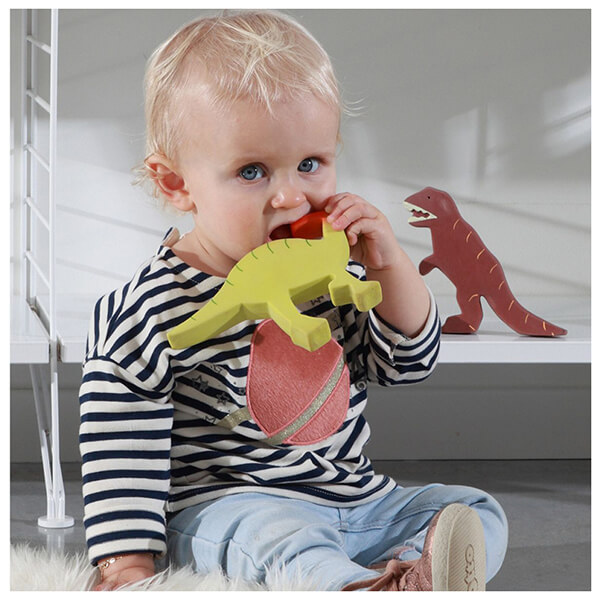 Το μωρό Parasaurolophus από τη συλλογή My First Tikiri Dinos είναι όμορφα διακοσμημένο. Το παιχνίδι δεινοσαύρων από βιολογικό φυσικό καουτσούκ είναι τέλειο για νήπια, τόσο ως παιχνίδι όσο και ως οδοντοφυΐας.