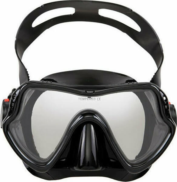 Μάσκα θαλάσσης μεσαίου εσωτερικού όγκου (90cm3). Κατάλληλη για υποβρύχιο ψάρεμα, καταδύσεις και snorkelling. Με εργονομικά περιστρεφόμενα κλιπ, με κουμπί για εύκολη ρύθμιση πάνω στο σώμα.