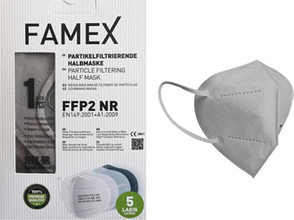 ΜΑΣΚΑ ΠΡΟΣΤΑΣΙΑΣ ΠΡΟΣΩΠΟΥ FFP2 ΜΑΣΚΑ FAMEX ΥΨΗΛΗΣ ΠΡΟΣΤΑΣΙΑΣ PFE 95% ΓΚΡΙ 50ΤΜΧ