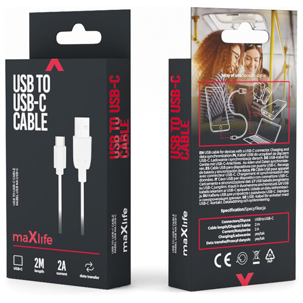 maxlife cable usb usb c 20 m 2a white extra photo 1