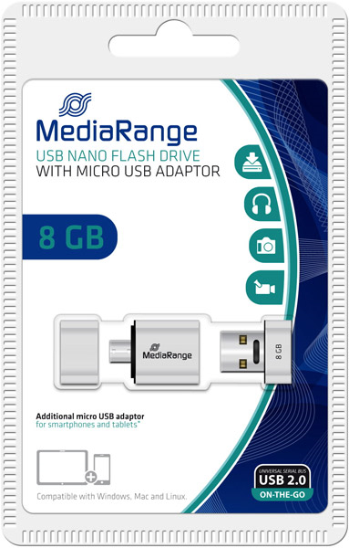 MEDIARANGE MR930 8GB USB 2.0 NANO FLASH DRIVE + MICRO USB ADAPTER (OTG)