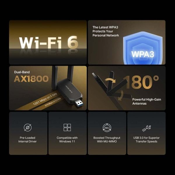 Περιεχόμενα συσκευασίας: AX1800 High-Gain Wireless Dual-Band USB Adapter (MA72XH)