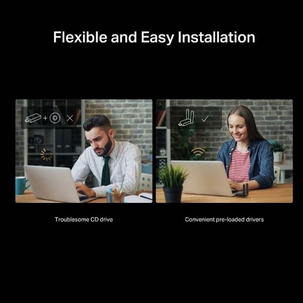 Ευέλικτη και εύκολη εγκατάσταση Χάρη στους ενσωματωμένους οδηγούς για Windows, η εγκατάσταση είναι απλή και άμεση. Απλώς συνδέστε τον MA72XH στον υπολογιστή σας και απολαύστε γρήγορη ασύρματη δικτύωση μέσα σε λίγα δευτερόλεπτα.