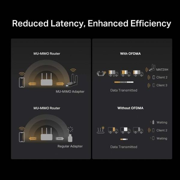 USB 3.0 για ανώτερες ταχύτητες μεταφοράς Η διεπαφή USB 3.0 προσφέρει ταχύτητες μεταφοράς δεδομένων έως και 10 φορές υψηλότερες από το USB 2.0, διατηρώντας παράλληλα συμβατότητα προς τα πίσω. Σε συνδυασμό με το Wi-Fi 6, καθιστά τον MA72XH ιδανικό για HD streaming, online gaming και λήψεις μεγάλων αρχείων.